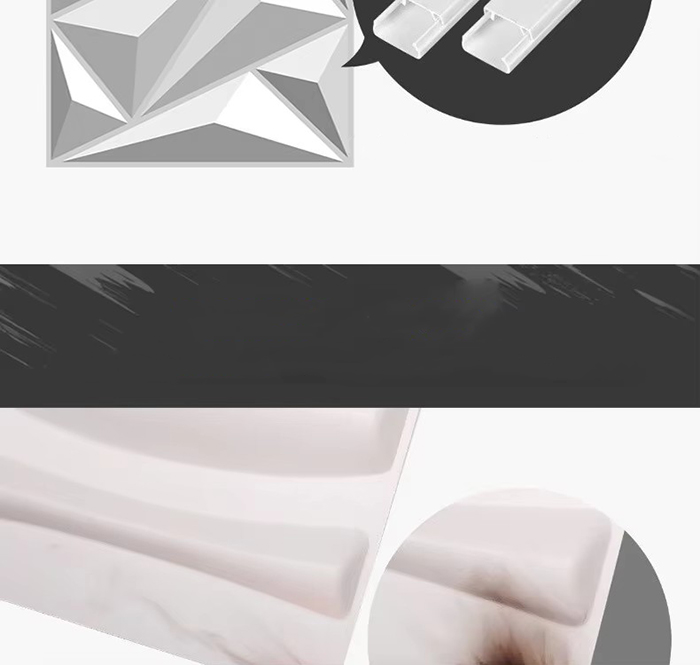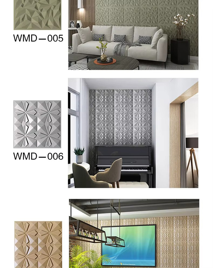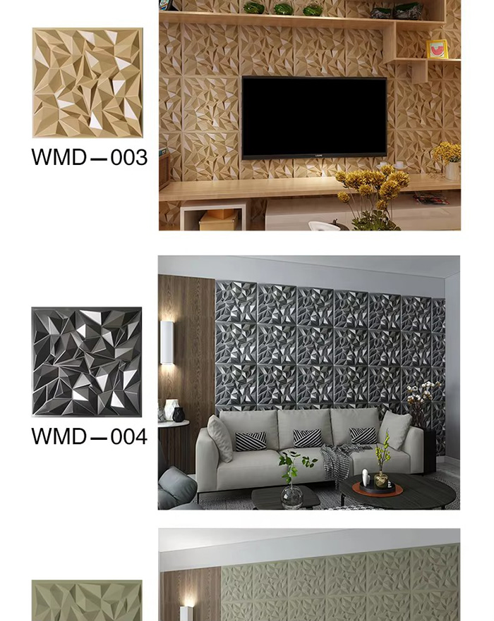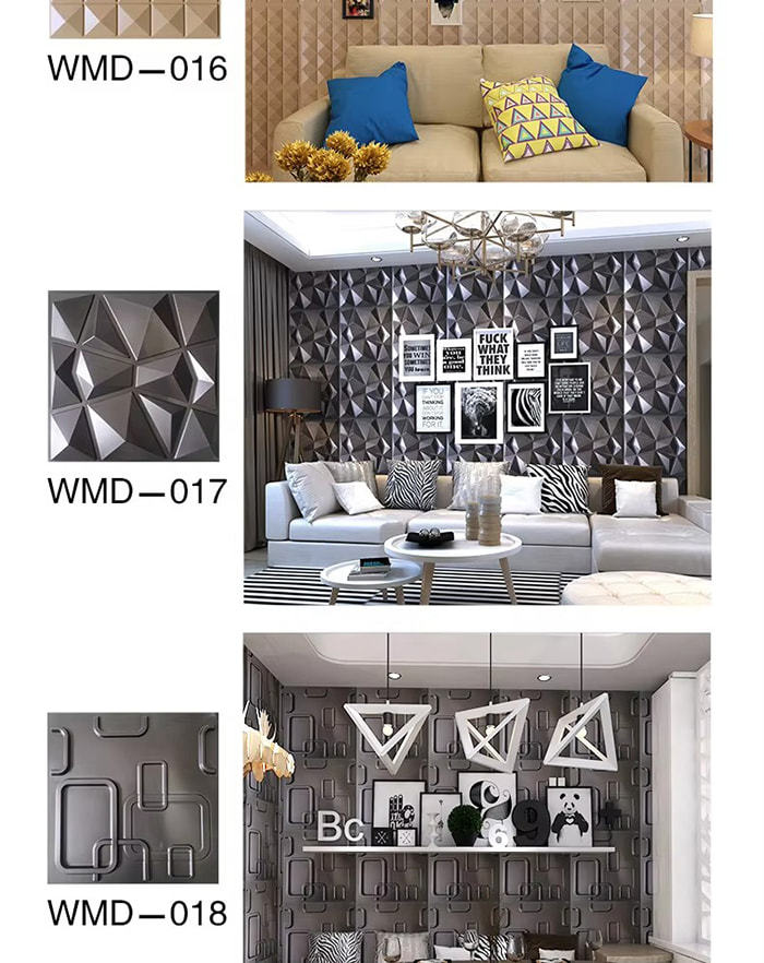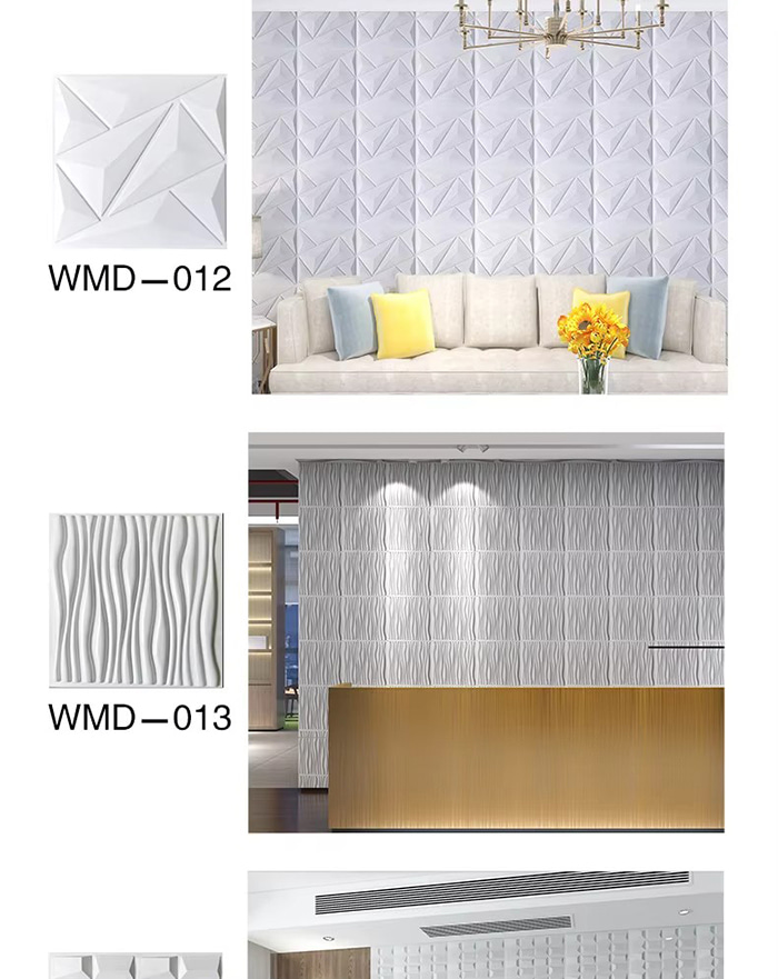 Panel dinding 3D adalah jenis bahan dekoratif baru. Melalui pengepresan panas cetakan, pengukiran dan penggilingan atau pencetakan CNC, pola tiga dimensi terbentuk pada permukaan panel. Bahan dasarnya meliputi PVC, papan kepadatan, paduan aluminium, serat bambu, dll. Mengambil PVC sebagai contoh, material komposit bermolekul tinggi diekstrusi pada suhu tinggi, dan pola permukaannya ditekan dengan cetakan baja presisi, dengan presisi cekung dan cembung minimum mencapai 0,1 mm. Panel dinding 3D memiliki efek visual tiga dimensi. Melalui prinsip pembiasan cahaya dan bayangan, bidang 2D diubah menjadi efek visual 3D dengan kesan kedalaman, dan pelapisan visual ditingkatkan lebih dari 3 kali lipat di bawah area yang sama.