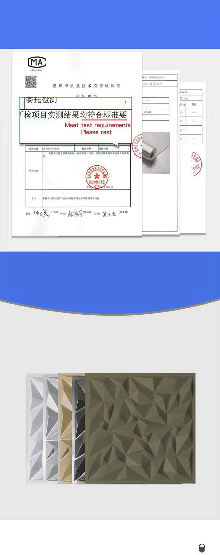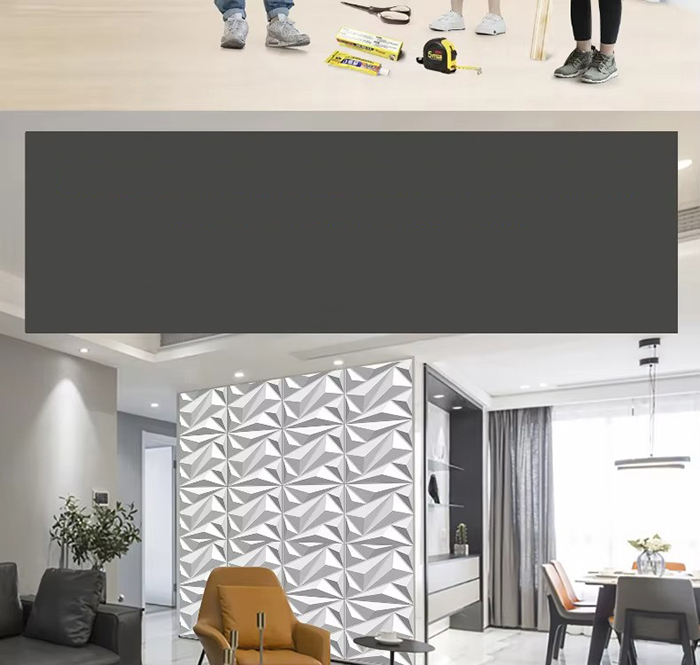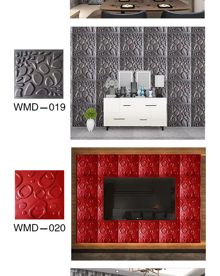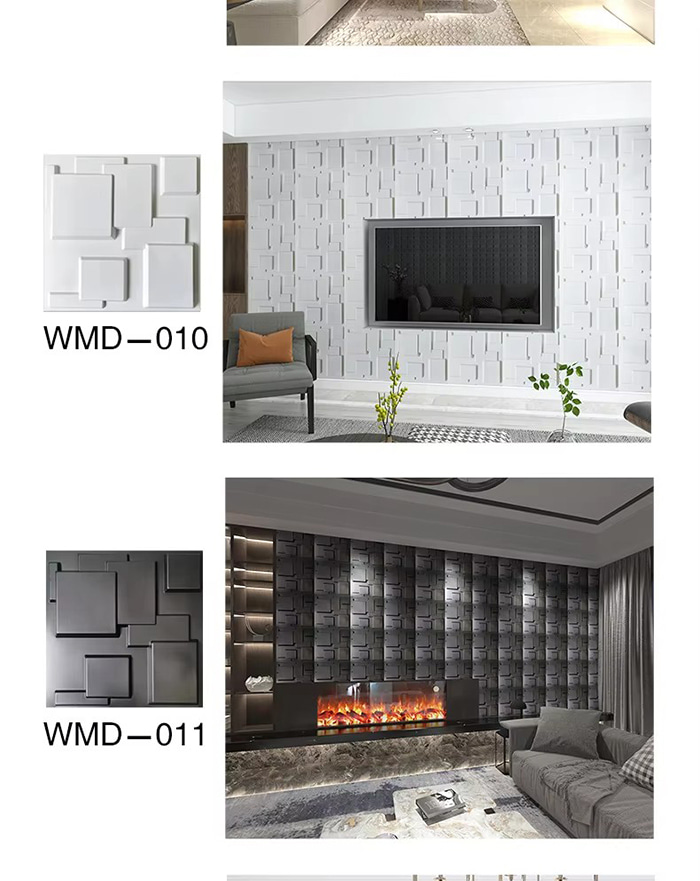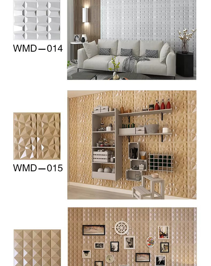 Panel dinding 3D adalah jenis bahan dekoratif baru. Melalui pengepresan panas cetakan, pengukiran dan penggilingan atau pencetakan CNC, pola tiga dimensi terbentuk pada permukaan panel. Bahan dasarnya meliputi PVC, papan kepadatan, paduan aluminium, serat bambu, dll. Mengambil PVC sebagai contoh, material komposit bermolekul tinggi diekstrusi pada suhu tinggi, dan pola permukaannya ditekan dengan cetakan baja presisi, dengan presisi cekung dan cembung minimum mencapai 0,1 mm. Panel dinding 3D memiliki efek visual tiga dimensi. Melalui prinsip pembiasan cahaya dan bayangan, bidang 2D diubah menjadi efek visual 3D dengan kesan kedalaman, dan pelapisan visual ditingkatkan lebih dari 3 kali lipat di bawah area yang sama.