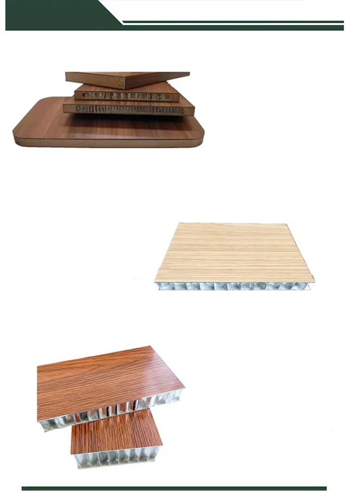 Panel dinding sarang lebah aluminium adalah struktur sandwich, terdiri dari dua lapisan aluminium dan inti sarang lebah. Panel ini terutama terbuat dari pelat aluminium paduan 3003H24 berkualitas tinggi atau pelat aluminium paduan mangan tinggi 5052AH14 sebagai bahan dasar, dengan ketebalan panel 0,8~1,5mm dan ketebalan pelat bawah 0,6~1,0mm. Inti sarang lebah terbuat dari aluminium foil 3003 yang sangat tipis dengan ketebalan 0,04~0,06mm dan panjang sisi 5~6mm. Ia memiliki struktur lubang sarang lebah heksagonal dengan lubang yang terhubung satu sama lain. Seluruh proses pemrosesan diselesaikan di pabrik modern menggunakan teknologi pengepresan panas.