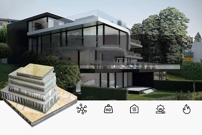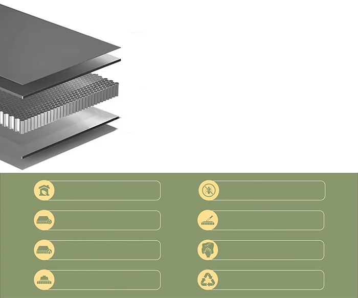 Insulasi termal yang sangat baik Struktur inti sarang lebah membentuk lapisan insulasi udara, yang memiliki efek penghematan energi yang signifikan (mengurangi konsumsi energi AC hingga lebih dari 30%).