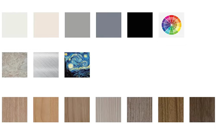 Dekorasi permukaanTransfer butiran kayu:Menggunakan teknologi transfer termal vakum, kejernihan tekstur mencapai 1200dpi, dan daya rekat ≥ level 1 (ASTM D3359).