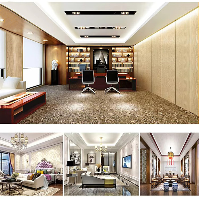 Ruang Komersial Hotel/Restoran : Desain butiran kayu/batu meningkatkan tekstur ruangan dan mendukung pembongkaran dan renovasi yang cepat.