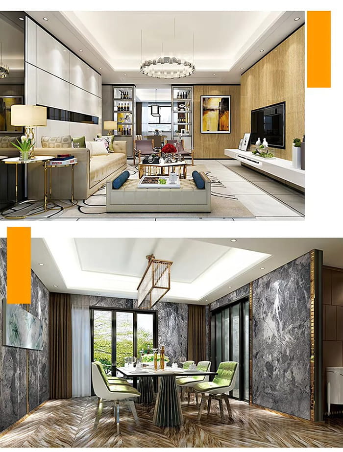 Dapur/Kamar Mandi: Performa tahan lembab yang sangat baik (penyerapan air ≤ 0,5%), dapat langsung menghubungi lingkungan lembab.