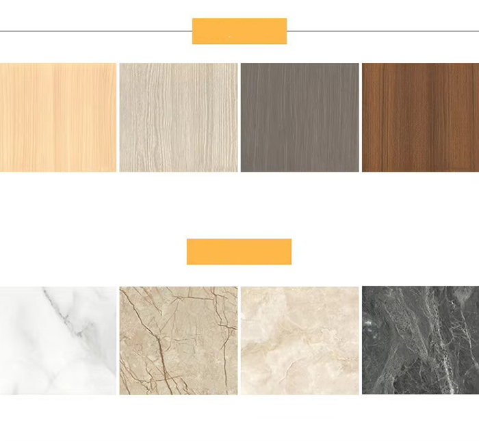 Desain yang Beragam Mendukung lebih dari 100 pola termasuk butiran kayu, butiran batu, warna solid, dll., dan dapat menyesuaikan gradien dan pola artistik.