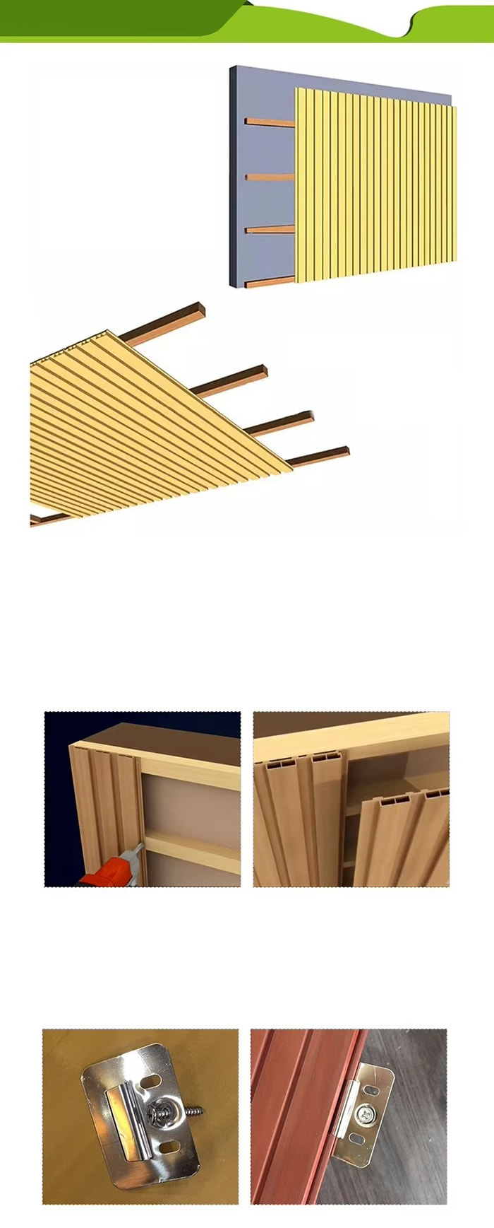 Mudah dipasang: Ini mengadopsi desain pra-alur dan sistem pengikat tersembunyi, yang dapat dengan mudah dipasang menggunakan alat pertukangan standar.
