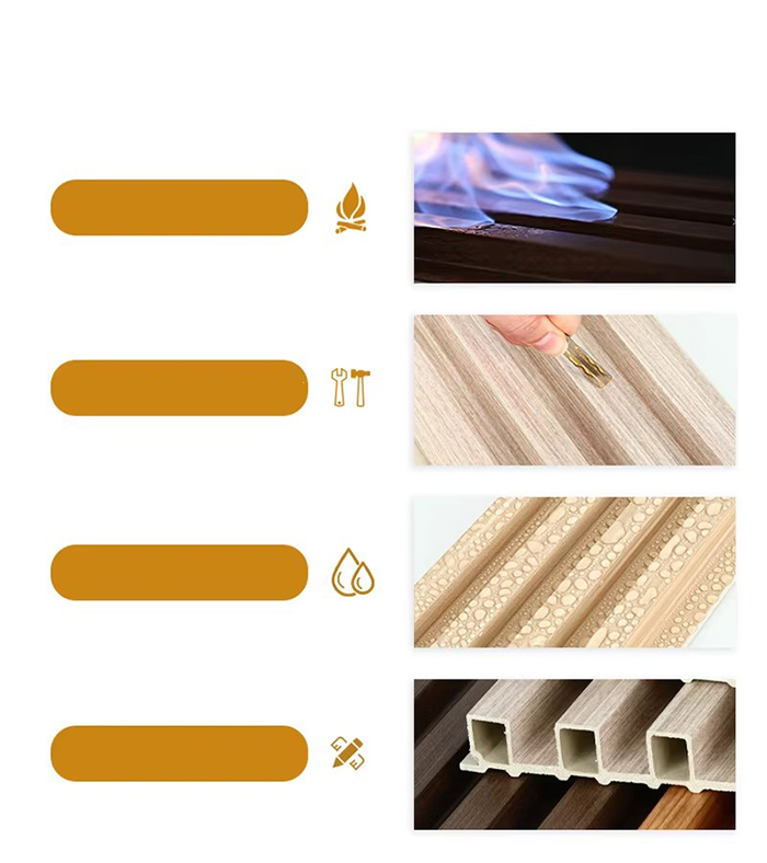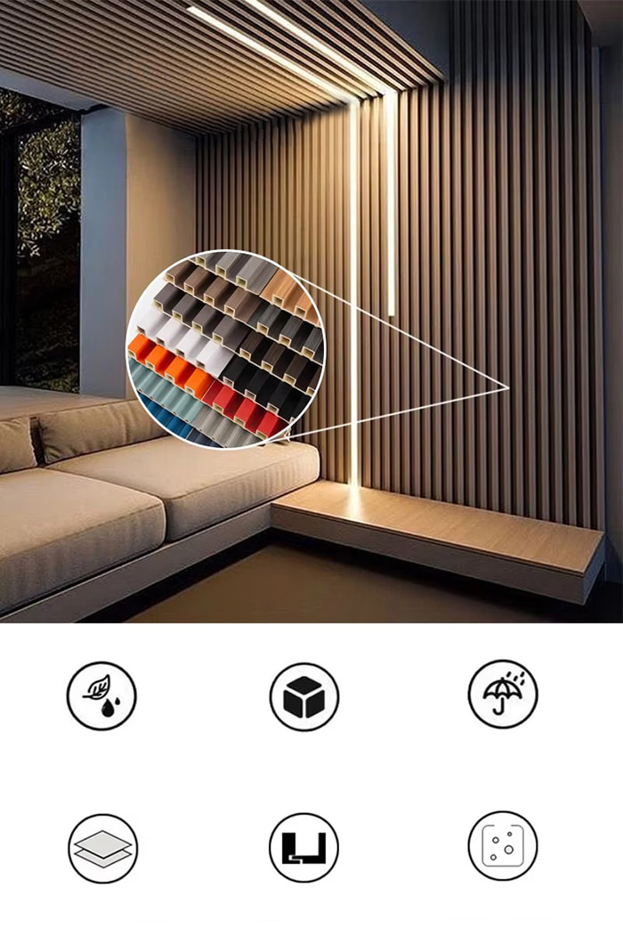 Panel dalam ruangan WPC adalah panel dekoratif baru yang ramah lingkungan yang terbuat dari serat kayu atau serat bambu sebagai bahan baku inti, ditambah dengan resin PVC, bubuk kalsium karbonat dan penstabil melalui proses suhu tinggi dan tekanan tinggi. Permukaannya mengadopsi lapisan UV atau teknologi transfer presisi tinggi untuk mensimulasikan tekstur kayu dan batu alam, serta memiliki karakteristik tahan air dan tahan lembab, tahan jamur dan antibakteri, ringan dan berkekuatan tinggi. Sangat cocok untuk dinding dalam ruangan, langit-langit, dinding latar belakang, dan pemandangan lainnya, dan merupakan pilihan ideal untuk menggantikan veneer kayu tradisional dan gusset plastik.