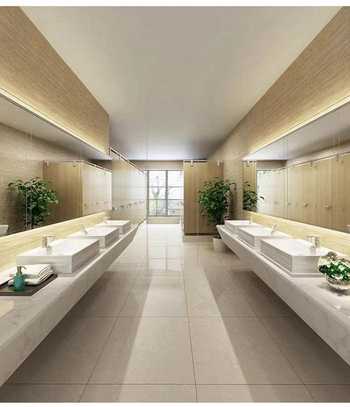 Ruang KomersialHotel/Pusat Perbelanjaan :Desain butiran kayu/batu menyempurnakan tekstur ruangan dan mendukung pembongkaran dan renovasi yang cepat (tingkat penggunaan kembali ≥ 90%).
