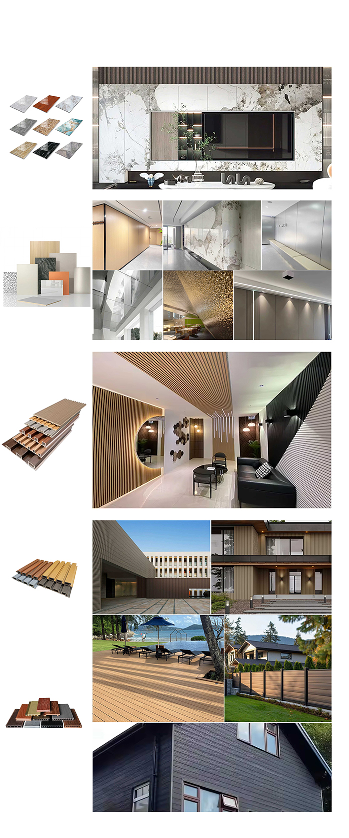 Dekorasi tempat tinggal: Dapat digunakan untuk hiasan dinding ruang tamu, kamar tidur, dapur, kamar mandi, balkon, dll. Dapat meniru tekstur bahan alami seperti butiran kayu dan butiran batu, menambah keindahan alam, dan memberikan insulasi suara.